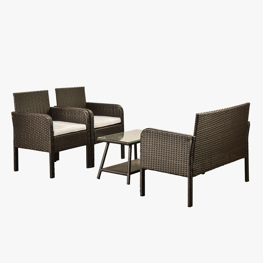 Rattan Wicker Chairs/Soft Cushion & Glass Table